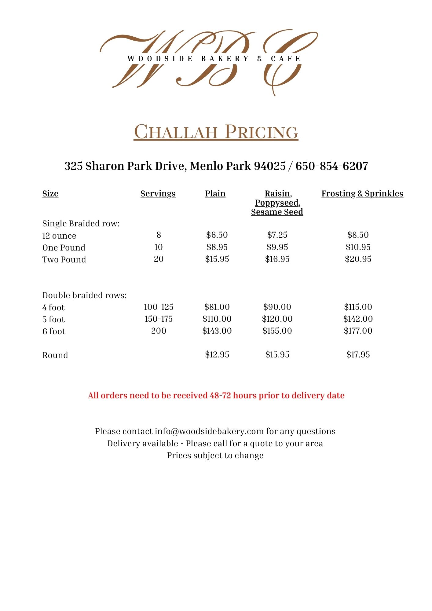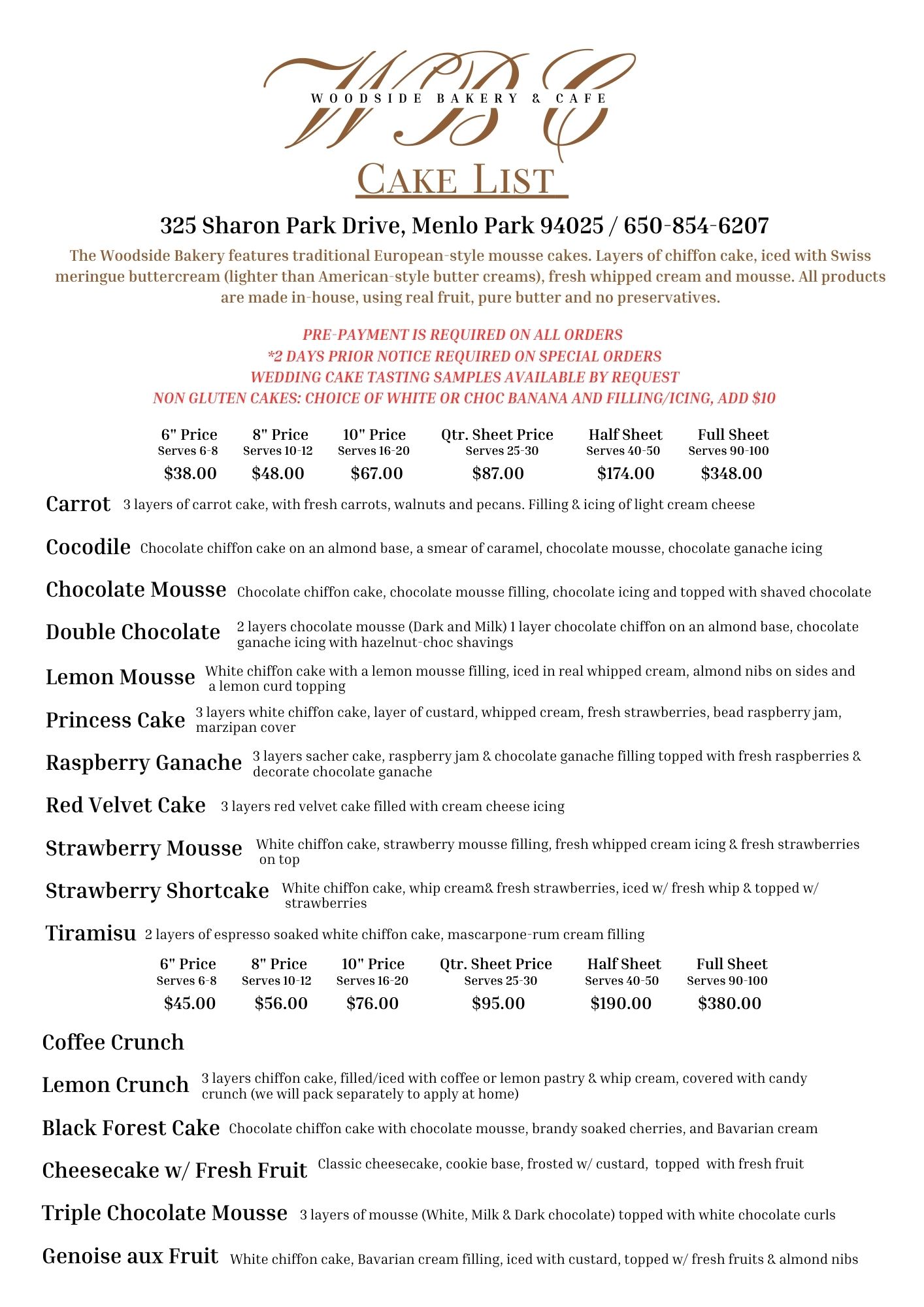 Call for Special Order Custom and Wedding Cakes or placing orders for our daily offerings in advance 650.854.6207